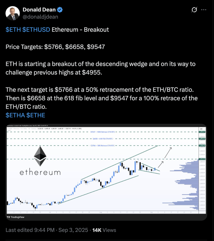 This ETH upside target resembles the ones recently put forth by Tesseract CEO James Harris and analyst Donald Dean.
