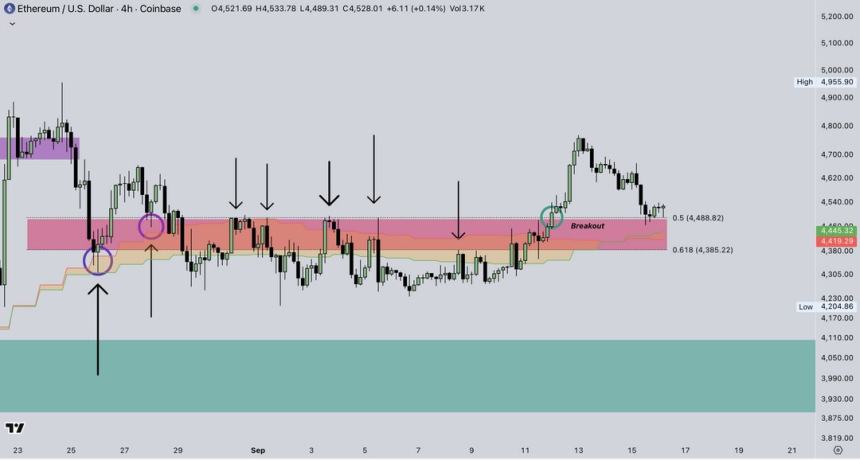 Ethereum‘s native token, Ether (ETH), has fallen 5.73% from its weekend high near $4,766, retreating as traders trim risk ahead of Wednesday’s Federal Reserve interest rate decision.