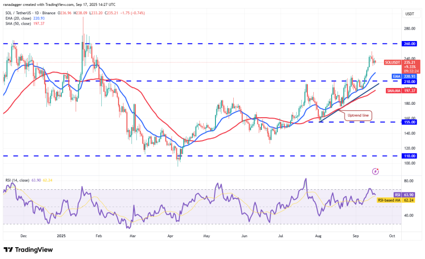 Contrarily, a break and close below the 20-day EMA indicates that the bulls are closing their positions. The SOL/USDT pair may then fall to the 50-day SMA ($197). Buyers will try to defend the 50-day SMA because a break below it could sink the Solana price to $173.