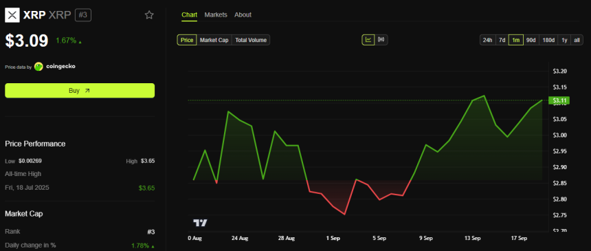 For the past few months, XRP price has been stuck between $2.60 and $3.40. In September, the altcoin