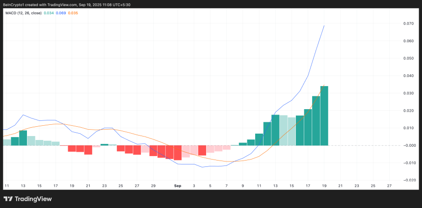 Furthermore, readings from IMX‘s Moving Average Convergence Divergence (MACD) indicator confirm this bullish outlook. As of this writing, the token’s MACD line (blue) rests above the signal line (orange), while the green histogram bars have grown in size, a sign that bullish activity has built up slowly.