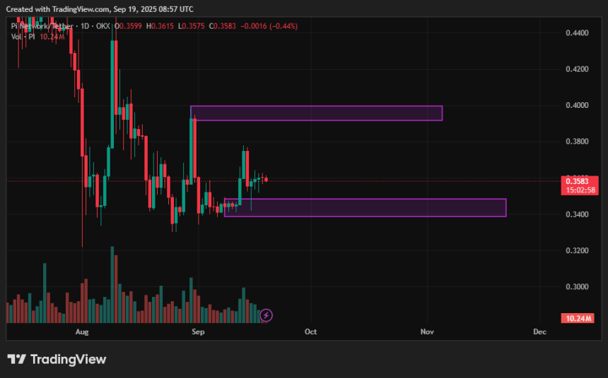 PI has been bouncing in a pretty narrow range between $0.34 support and $0.40 resistance, but has yet to convincingly break either level. The 24-hour trading volume is small (a few million USD, depending on the exchange), indicating that liquidity is adequate but not robust.