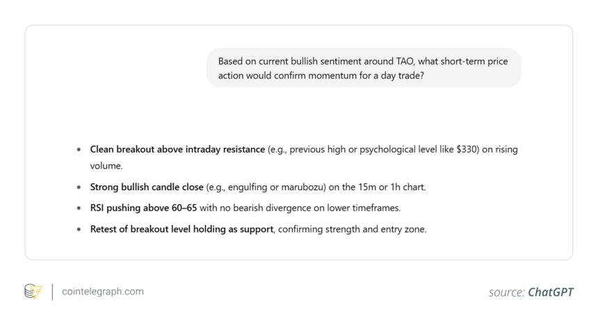Use case:The Grok output highlights bullish sentiment driven by TAOs user base, integrations and long-term growth potential.
