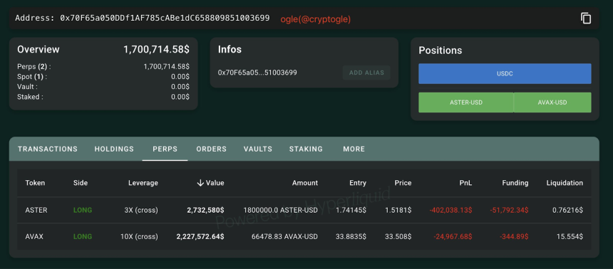 Popular crypto sleuth and World Liberty Financial (WLFI) adviser, Ogle, opened a $2.2 million long position with 10x leverage, betting on the Avalanche (AVAX) tokens price increase.