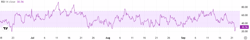 The indicator measures the speed and magnitude of recent price changes and is used by traders to spot reversal points. Ratios below 30 are typically seen as bullish territory as they suggest the asset is oversold and poised for a price increase. On the contrary, anything above 70 could be interpreted as a pullback signal.
