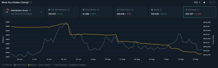 Another bullish case for the SHIB price is that exchange outflows have accelerated this month. There are now 283 trillion tokens on exchanges, down from 297 trillion three months ago.