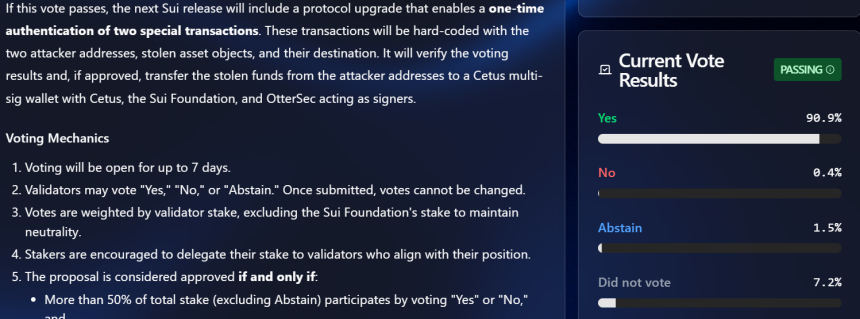 The Sui community passed a vote for frozen Cetus funds. Source: Sui