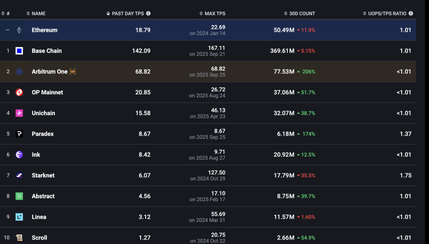 TPS of some L2 networks on OP Stack. Source: L2Beat