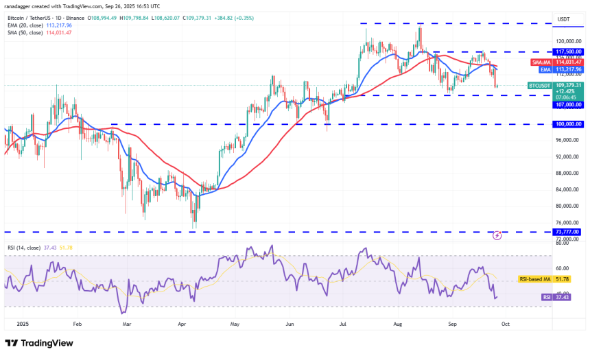 Could BTC rebound off the $107,000 support with strength, pulling altcoins higher? Lets analyze the charts of the top 10 cryptocurrencies to find out.