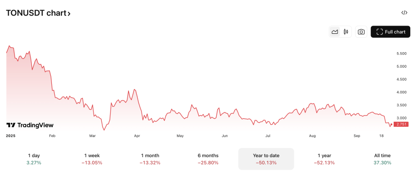The altcoin was trading at $2.75 at time of writing, down about 50% year-to-date, and has retraced over 25% in the past six months, according to TradingView data.