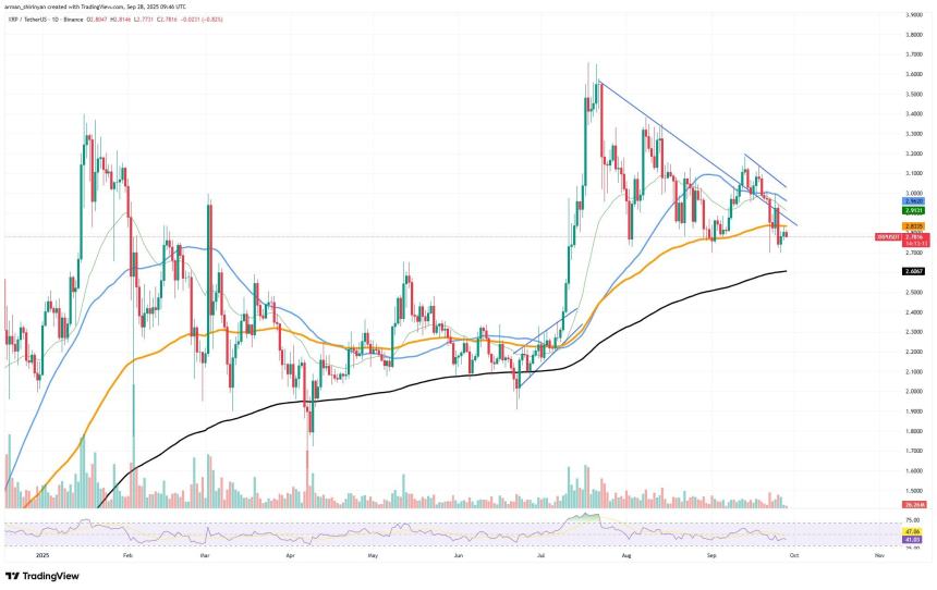 XRP has recovered modestly from the $2.70 level, where selling pressure temporarily subsided, but now finds itself at a crucial crossroads. Debate has centered on whether the bounce is the start of a recovery attempt, or just a dead cat bounce in the middle of a larger downtrend.