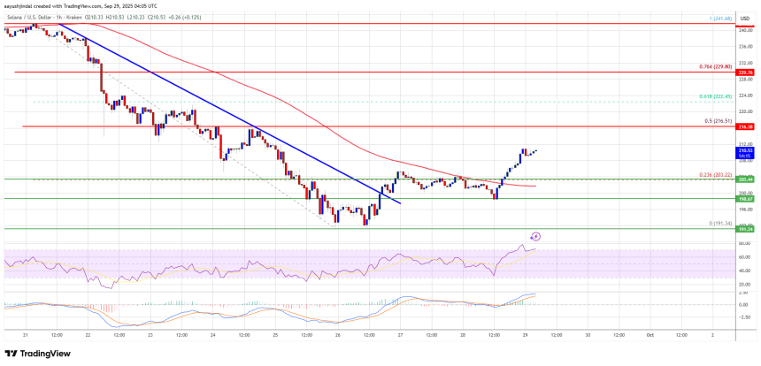 WikiBit 2025-09-29 13:02Solana started a fresh decline below the $225 zone. SOL price is now attempting to recover from $192