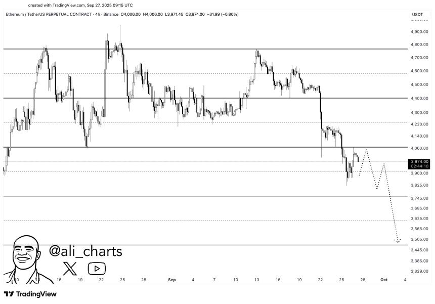 Moving on to the top altcoin, Martinez says Ethereums odds of dipping down to a price tag of $3,500 have risen after failing to hold the $4,000 level.