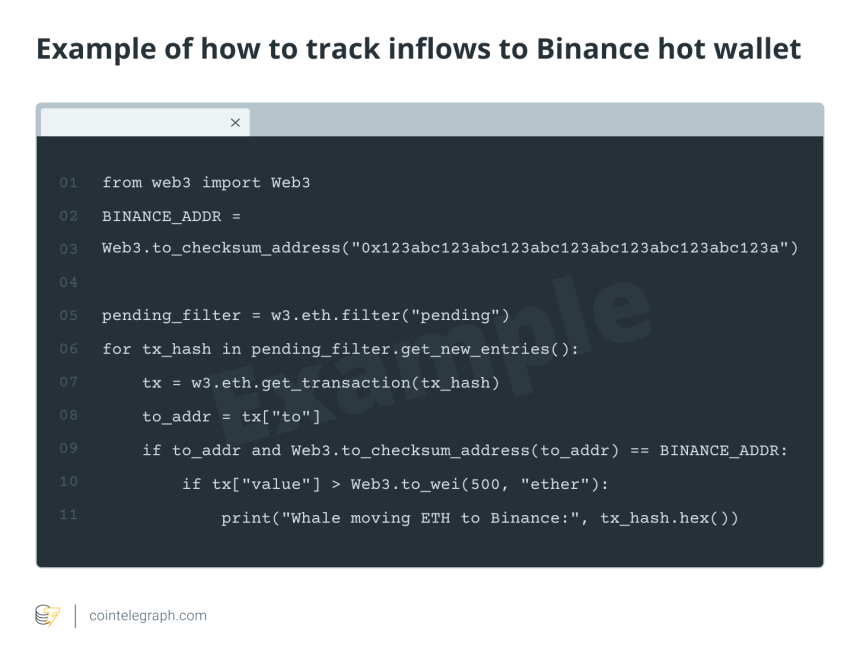 Consider a transfer worth more than $1 million in Ether (ETH). Traders usually track such activity through a blockchain data API, which delivers a direct stream of real-time transactions. Afterward, simple rule-based logic can be built into the AI to monitor this flow and pick out transactions that meet preset conditions.