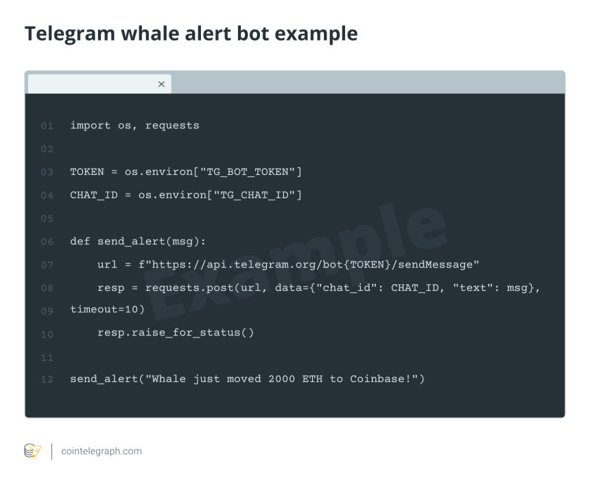 Create real-time notifications using Discord or Telegram, or take it a step further with an automated trading bot that makes trades in response to whale signals.