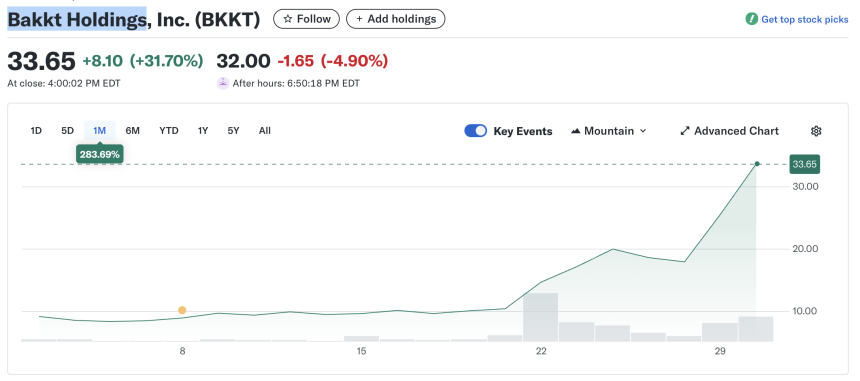 It marked the first time Bakkt crossed the $30 threshold since January, a sharp reversal for a company that had struggled below $10 for much of the year. Investors are betting that a combination of new leadership, treasury expansion, and streamlined operations can restore credibility to the digital asset platform.