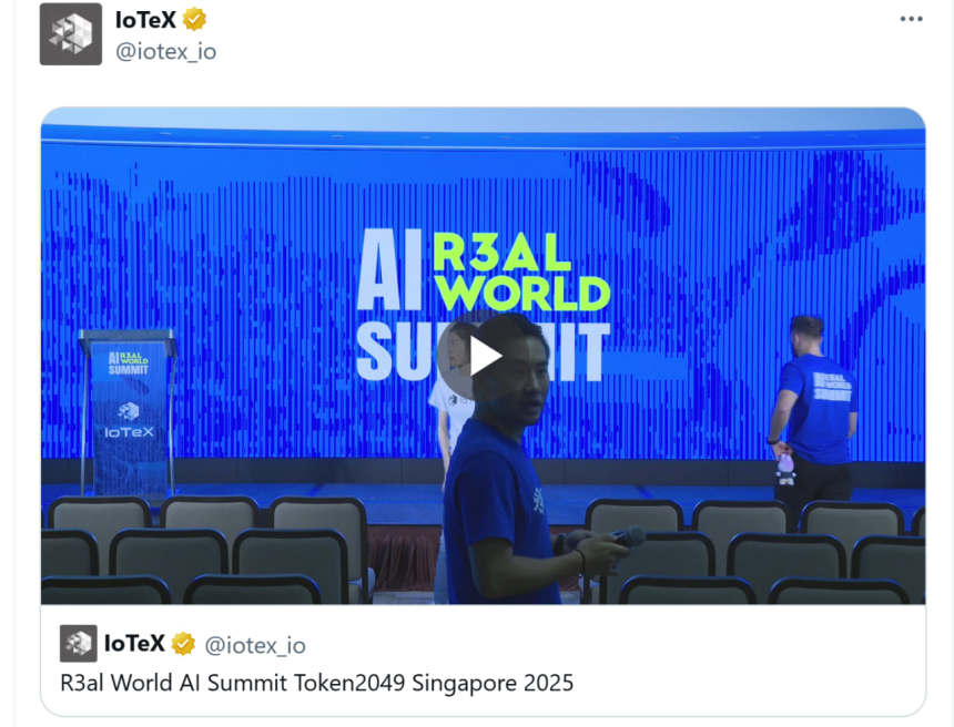 At the R3al World AI Summit during the Singapore Token2049 conference, IoTeX unveiled the project in collaboration with a group of founding Alignment Partners, including Vodafone, the Blockchain Association, Filecoin, Theta Network, Aethir and others.