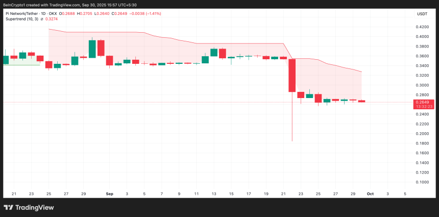 As with PI, when an assets price trades below the Super Trend line, it signals a bearish market where selling pressure is dominant. This leaves PI vulnerable to more declines.