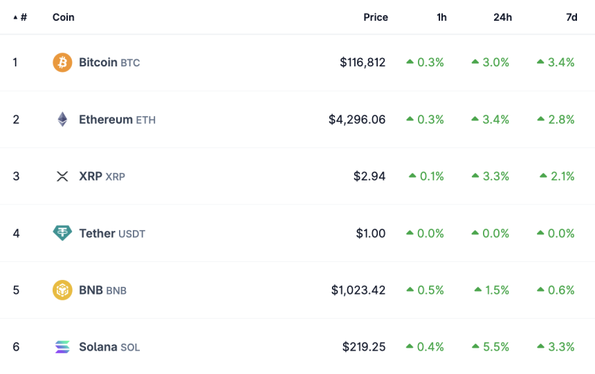 For example, even though TradFi stocks went down, the crypto sector is feeling bullish, as the leading tokens and general market cap have both risen healthily: