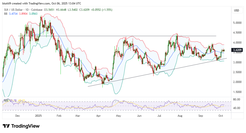 Sui (SUI) price is showing signs of a potential breakout as bulls stabilise above the $3.50 threshold.