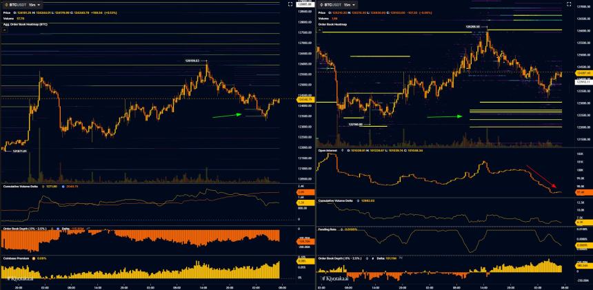 “Passive selling on coinbase & taker selling on binance spot led the bleed back to $123.2K,” trader Skew explained in their latest analysis on X.