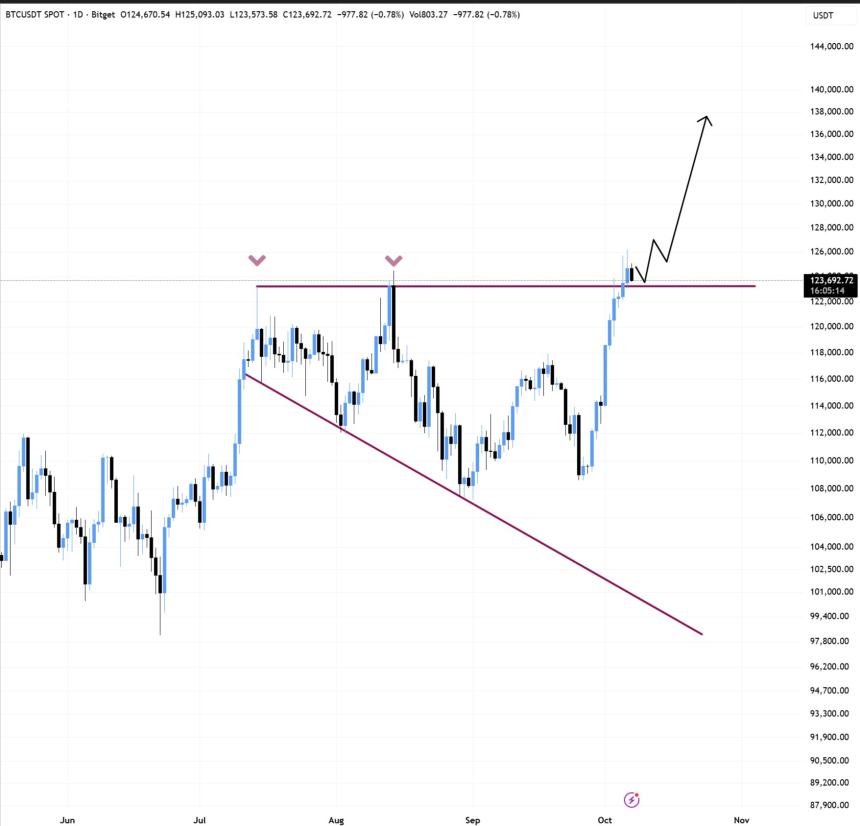 “I wouldn't be surprised to see a fakeout below it, but overall a few weekly close above $123K is needed. This will set the stage for the next 20%-30% rally in the coming weeks.”