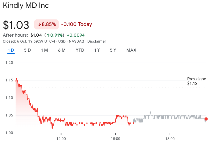 Kindly MD was the worst-performing Bitcoin treasury company on Monday. Source: Google Finance
