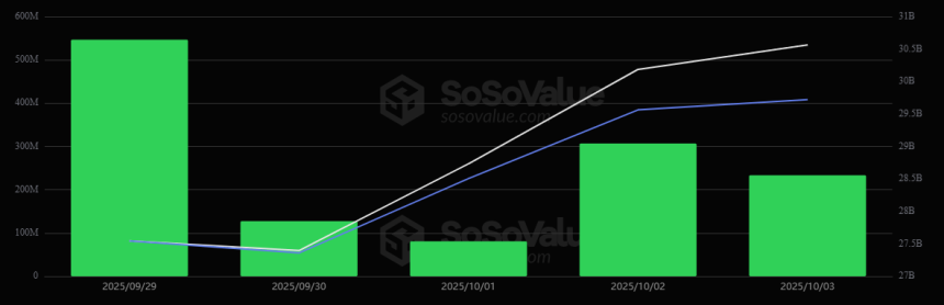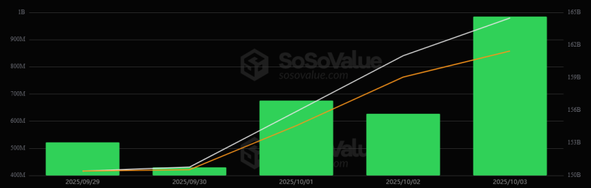 Five Straight Days of Green: Bitcoin and Ether ETFs Roar Into October