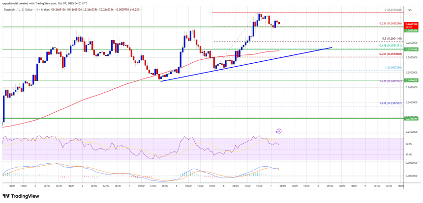 Dogecoin started a fresh increase above the $0.250 zone against the US Dollar. DOGE is now consolidating and might aim for more gains above $0.270.