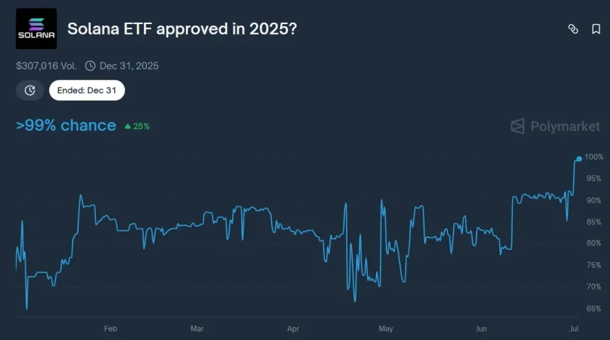 This can be a big week for Solana as the final decision on spot SOL ETFs might be just days away. On Polymarket, traders are assigning over 99% odds to approval this year. Bloomberg ETF analysts Eric Balchunas and James Seyffart now see a 100% probability of approval. They cited clearer regulatory guidance and leadership changes at the SEC.