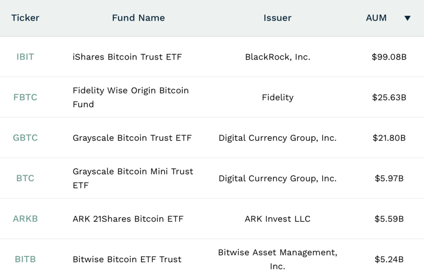 The largest spot bitcoin ETFs. (Source: ETF.com)