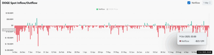 In the market data, it is shown that exchange reserves have declined by almost $23 millionworth of DOGEtraded out of key trading hubs. Historically, these outflows are associated with periods of whale accumulations as huge investors transfer holdings into cold storage. The trend reflects growing conviction that Dogecoin may be preparing for another sharp move higher.