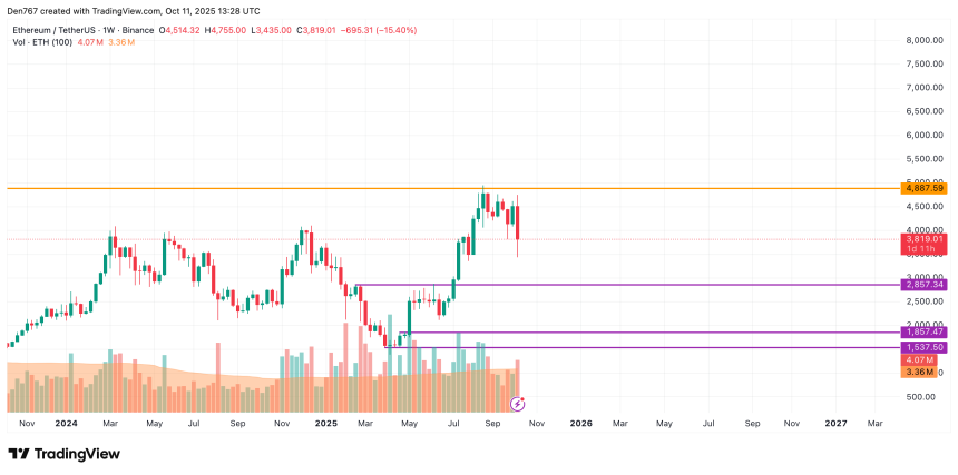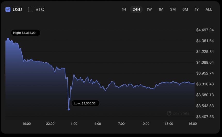 Ethereum is trading at $3,820 at press time.