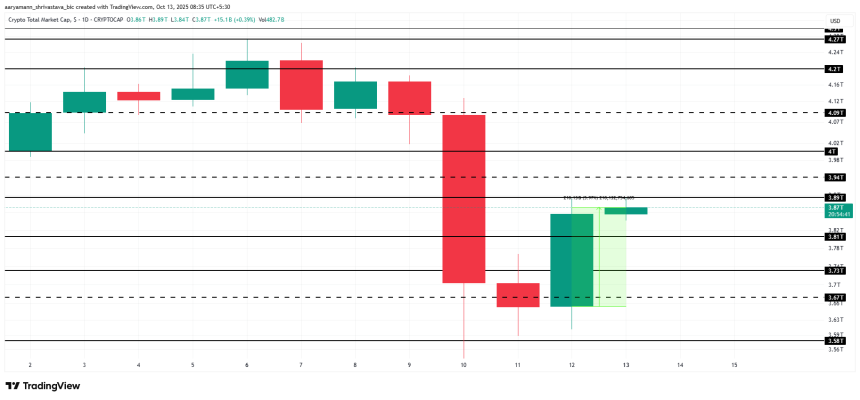 TOTAL now appears poised for further recovery if it can successfully breach and flip the $3.89 trillion level into support. Doing so could strengthen market sentiment and drive the collective valuation of major cryptocurrencies higher, potentially pushing the total crypto market cap toward the $4.00 trillion threshold.