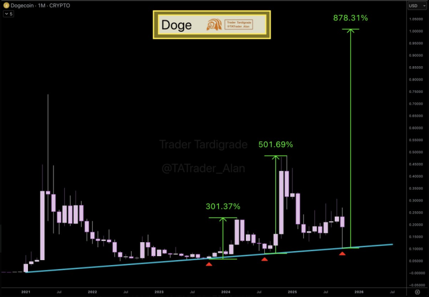 Dogecoin price stabilized above $0.20 following a sharp correction earlier in October. Analysts identified $0.30 as the immediate resistance and noted that a sustained move beyond $0.40 could open the door for a broader rally. The price trend remains linked to Bitcoin‘s direction, with historical data showing that DOGE often amplifies BTC’s movements during market cycles.