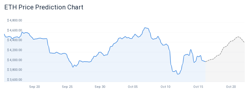 According to our Ethereum price prediction, ETH is expected to reach a price of $ 4,427.58 by Oct 20, 2025. This would represent a 10.37% price increase for ETH in the next 5 days.
