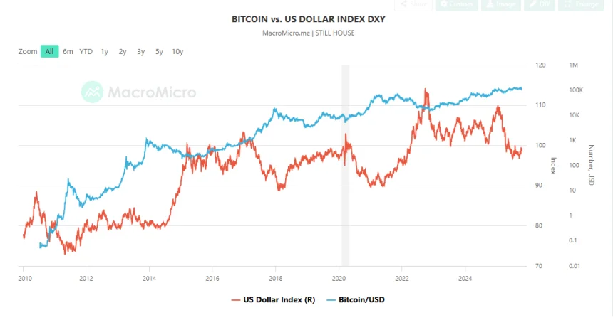 BTC has shown it can offset fluctuations in the dollar index, retaining its growth even during periods of US dollar weakness. | Source: MacroMicro