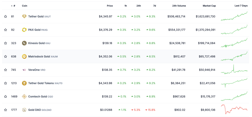 Gold-linked digital assets are surging as the metals price climbs above $4,370 per ounce. The rally has prompted issuers to launch new blockchain-based products, turning gold into an on-chain financial instrument.