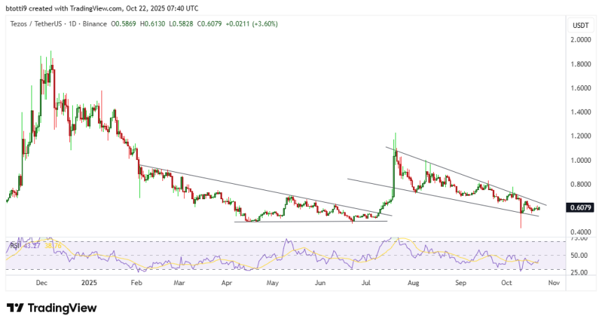 WikiBit 2025-10-22 19:03Tezos price is hovering near $0.60 amid a 4% surge in the past 24 hours.XTZ eyes a potential bounce