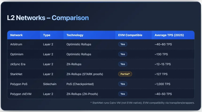 L2 networks handle hundreds or thousands of TPS since they process transactions off-chain.