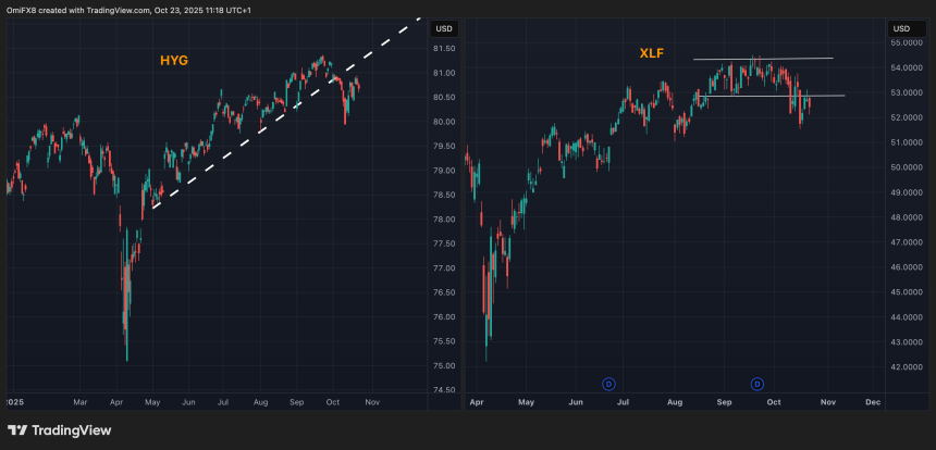 HYG and XLF daily charts. (TradingView)