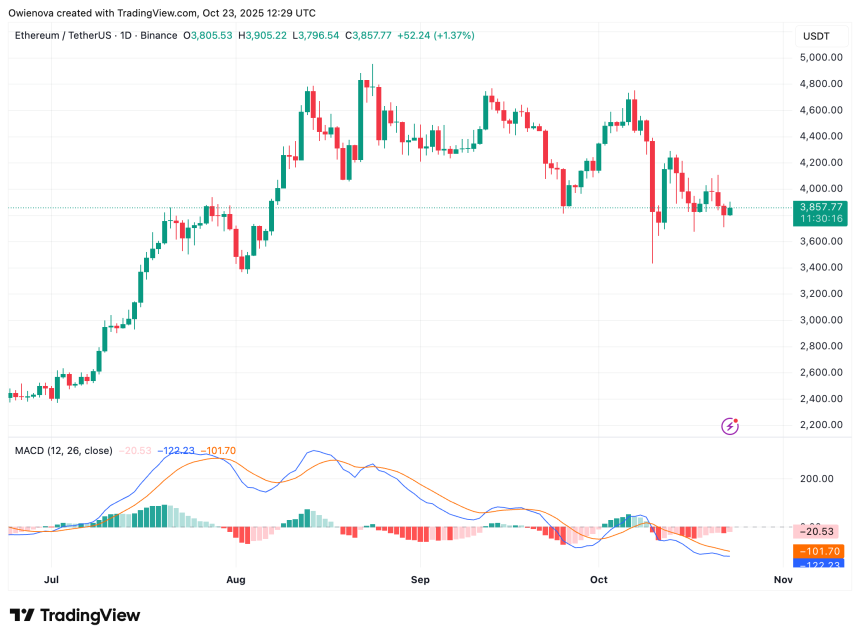 WikiBit 2025-10-24 08:03Ethereum is holding firm within the $3,600–$3,800 range, showing resilience despite recent market pu