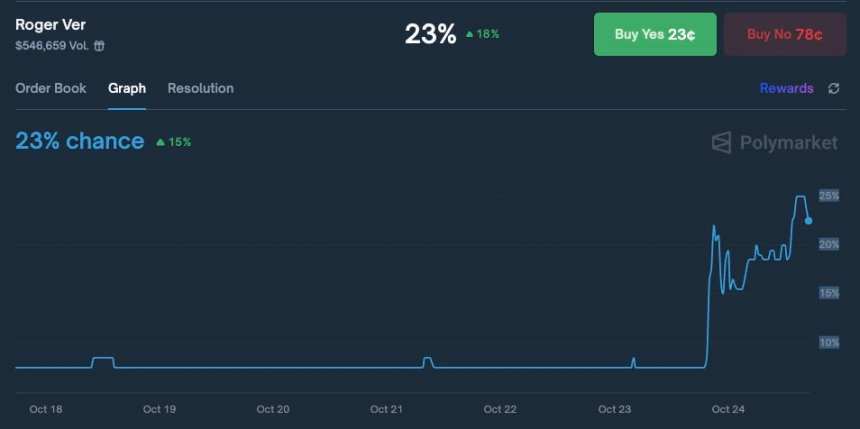 Roger Ver is back in the headlines for a reason that feels straight out of crypto theater. The man once called “Bitcoin Jesus” has suddenly shot to the top of Polymarket‘s betting boards, with traders giving him a 23% chance of being the next high-profile figure to get a pardon in 2025. That is more than double Sam Bankman-Fried’s 9% and even higher than Diddys 14%.