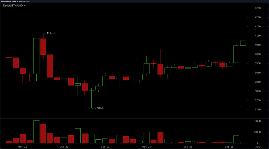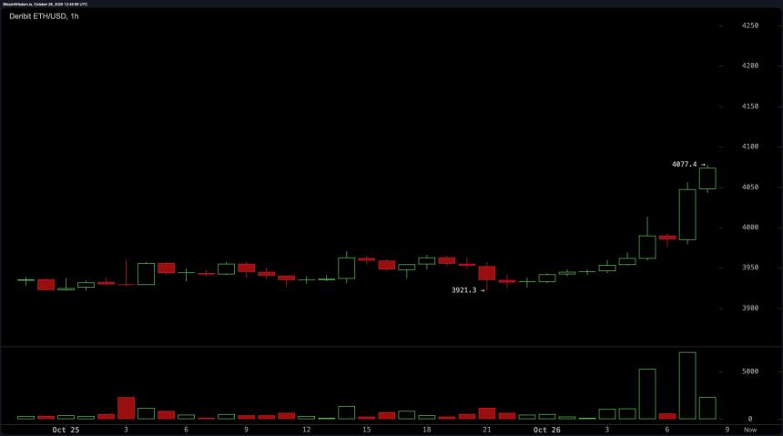 Ethereum on Sunday, Oct. 26, is standing at $4,070 per unit, moving within an intraday range of $3,926 to $4,081.90, while racking up $16.27 billion in trading volume and holding a market cap of $489 billion. The asset is testing overhead resistance with renewed momentum, though its long-term trend remains mixed across technical indicators.