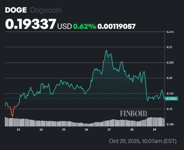 Dogecoin (DOGE) is currently changing hands at around $0.19, up 0.62% on the week, and ChatGPT noted the meme coin enjoys a strong brand recognition, a large community, and previous bull-cycle momentum.