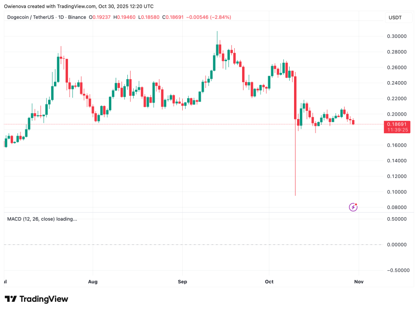 WikiBit 2025-10-31 09:02Dogecoins recent decline may be nearing exhaustion as the price edges toward a crucial support zone.