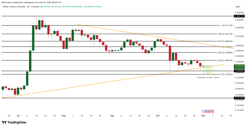 The Stellar (XLM) price has entered November on a quieter note, trading flat near $0.30 after a volatile October. Last month was rough, with prices falling about 17%, but Stellar managed to hold steadier than most peers — limiting weekly losses to just above 6%.