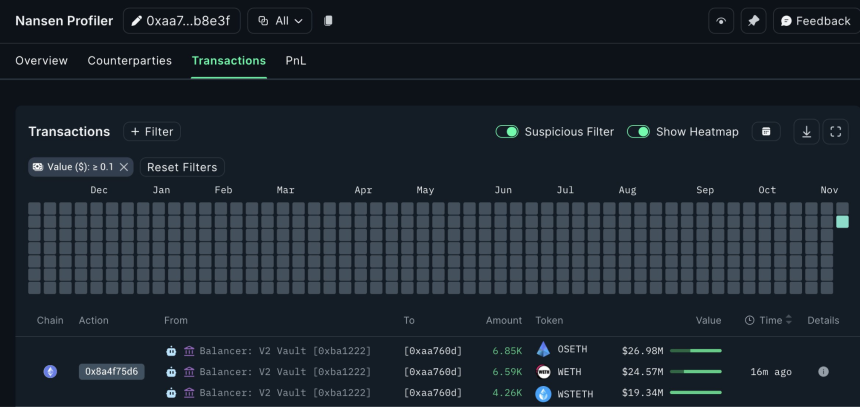 Update Nov. 3, 9:47 am UTC: This article has been updated to add the latest figures, Balancers white hat bounty offer and comments from Nicolai Sondergaard, research analyst at Nansen.