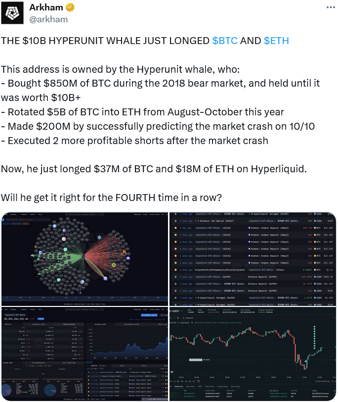 HyperUnit has also executed two more profitable shorts since then, which has prompted Arkham to ask whether they will “Get it right for the FOURTH time in a row?”