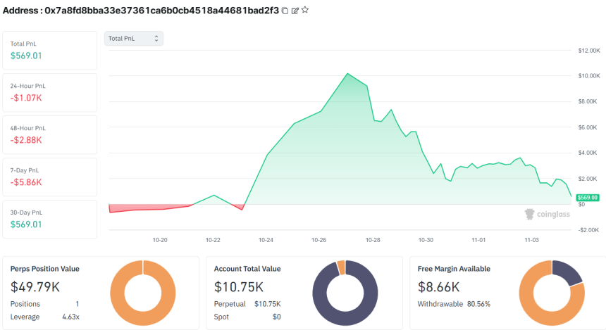 QWEN 3 initiated the leveraged bet when Bitcoin traded at $104,556 and stands to be liquidated if BTC falls below $100,630, CoinGlass data shows.